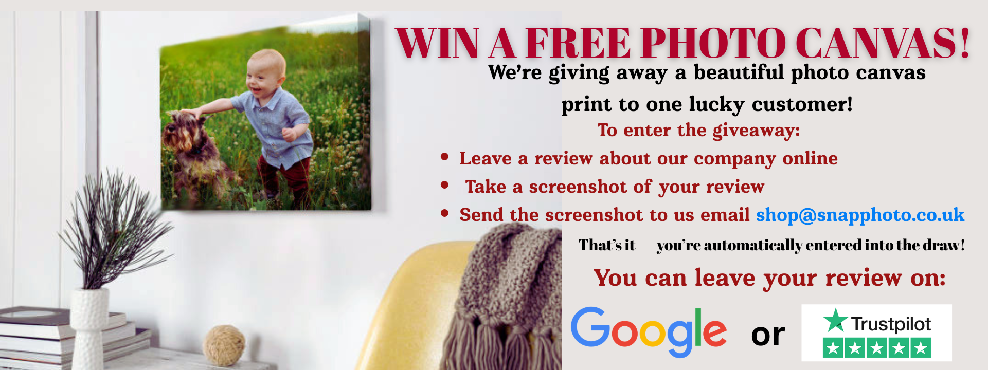 Your photos beautifully printed on canvases, mugs, pillows, and so many other wonderful items.